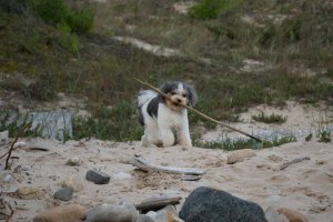 Apparently he doesn’t think so. When I take him to the doggy park, he jumps up on benches and rocks so he is eyeball-to-eyeball with the biggest dog in the park. He has absolutely no use for dogs that are his size. He wants to run with the BIG BOYS. He wants to carry the BIG stick.